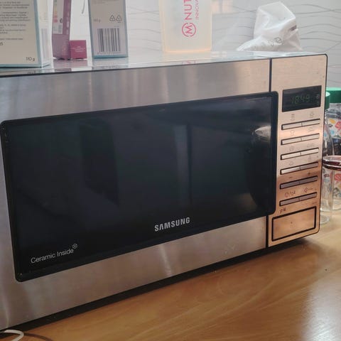 Toimiva samsungin mikro. Kello ei toimi ja kun säätää ajastusta niin välillä heittelee eriaikoja mutta ruuan on lämmittänyt aina!