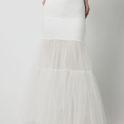 Myynnissä kerran käytetty, erinomaisessa kunnossa oleva, vain silitystä kaipaava merenneitoalushame. Väri on tyylikäs samppanja tai norsunluu, joka sopii monenlaisten juhlapukujen, kuten hää- tai vanhojentanssimekkojen alle. Alushameen pituus 103cm. Nouto tai postitus (ostaja maksaa postikulut).