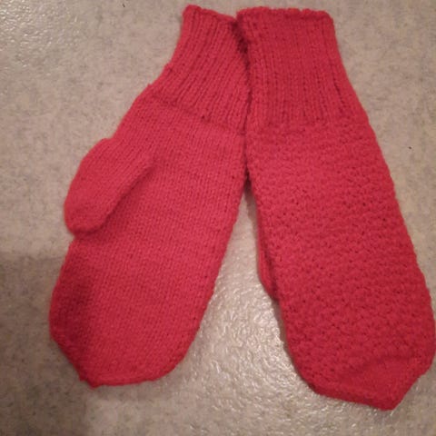 Myydään uudet, käsinneulotut lapaset kauniilla palmikkokuviolla.