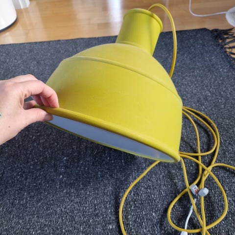 Kaksi muuton lamppua. Musta ja valkoinen. Pitkät johdot. Voi säädellä.