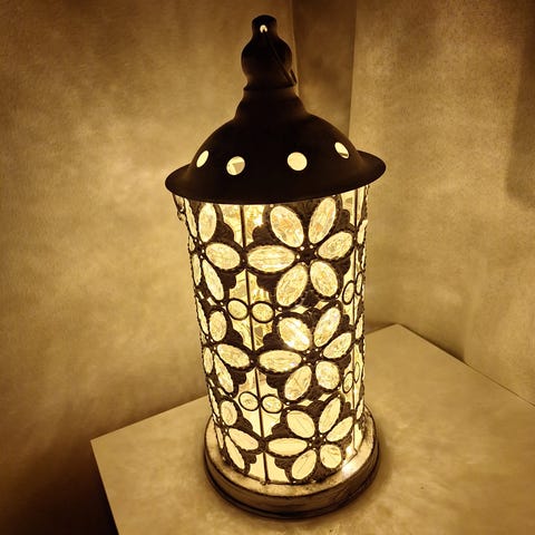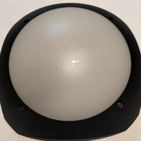 Valaisimen yleisilme siisti, kupu ehjä ja siistipintainen, mustassa lampunkannassa kuitenkin hankaumia/naarmuja kuvun terävästä reunasta (näkyy kuvassa). Ollut käytössä useamman vuoden, joten en osaa sanoa, kuinka paljon polttimolla on vielä käyttöikää. Polttimoita on saatavilla uutena, jos myöhemmin tarve.