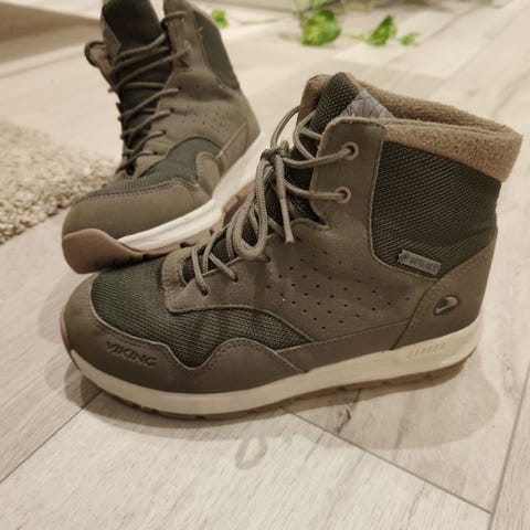 Viking GTX lasten talvikengät, koko 33, unisex-malli. Violetti väri vaaleanpunaisilla yksityiskohdilla. Kengissä tarrakiinnitys kahdella remmillä, kuminen vahvistettu kärki ja kulutusta kestävä ulkopohja. Päällismateriaali tekstiiliä ja synteettistä materiaalia, sisävuori tekstiiliä. Sopivat käyttöön kylmällä ja kostealla säällä. Kengät suunniteltu lasten jalalle tukeviksi ja helppoiksi pukea. Huom! Remmin kohdalla korjattu