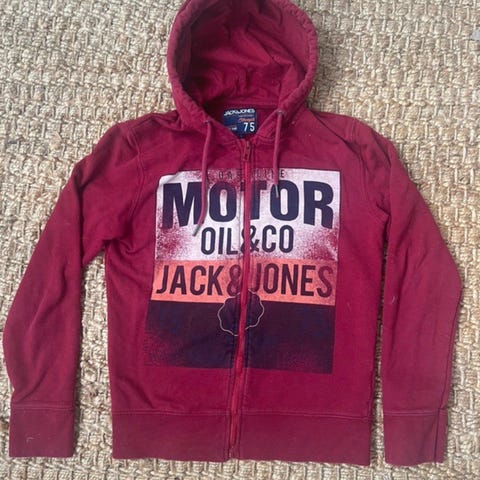Jack&Jonesin miesten valkoinen huppari, vaatteessa ei kokoa mutta vaikuttaisi M koolta, vähän käytetty.