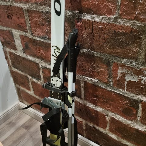 Lasten laskettelulasit, joissa on sininen kehys ja joustava, säädettävä sinisävyinen kuvioitu hihna. Laseissa on ruskeat linssit, jotka suojaavat silmiä auringonvalolta ja lumesta. Soveltuvat lasketteluun ja muuhun talviurheiluun lapsille.