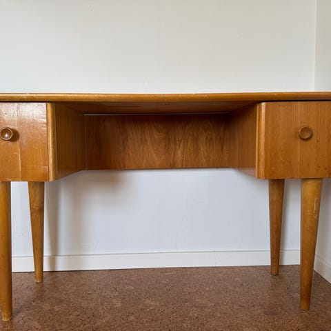 Meikki tai sivupöytä, sopii myös työpöydäksi. Sisällä peili ja laatikko.
