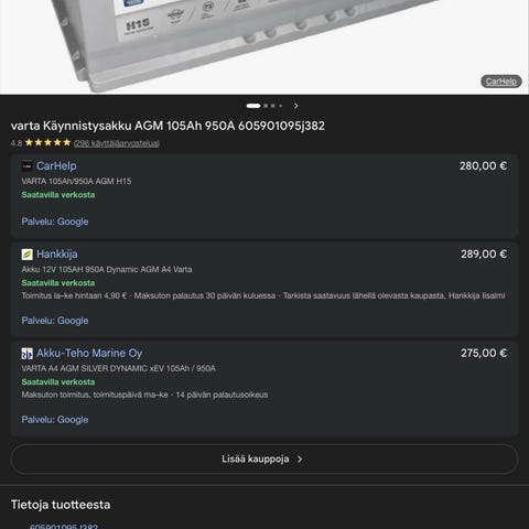 Myydään AGM-akku toimii hyvin. Suunniteltu kestämään Start-Stop-järjestelmän vaatimukset TEKNISET TIEDOT: