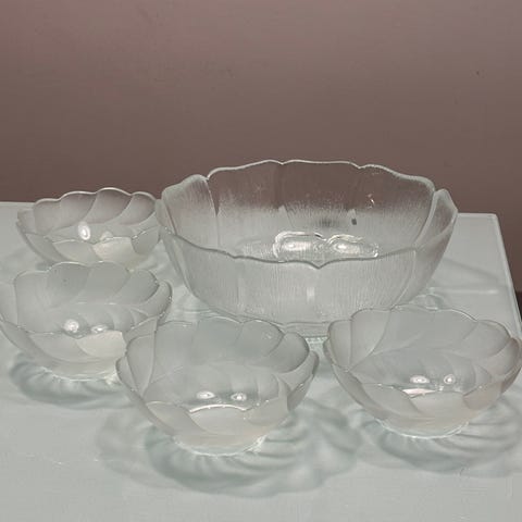 7kpl lasisia kauniita jälkiruokakulhoja tai jäätelökulhoja. Ei ole mielestäni kristallia. Ei säröjä ei halkeamia.