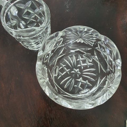kristalli# sokerikko# kermakko# tarjoilusetti# Violetta# puolalainen kristalli# vintage# kahvitarjoilu# teeastiasto