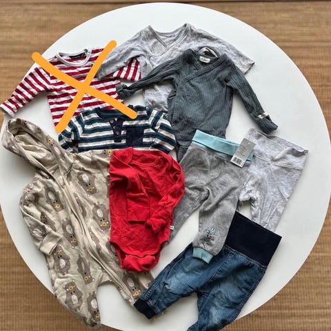 Viidet housut vauvalle, koko 62. Eläinkuosiset trikoot Ellos, ruskeat trikoot mywear, nauhalliset raidalliset Newbie, velouriserät raidalliset nameit, vuorelliset pehmeät farkut H&M. Siisti, käytetty kunto.