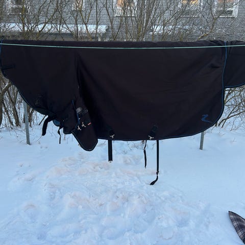 Kuvan mukainen ja värinen Horzen ponin ulkotoppaloimi koossa 85cm, paksuus 200g, pegasos-kuviolla. Vain sovitettu eli kuin uusi, muutama valkoinen karva saattaa olla. Postitus ok tai nouto Etelä-Sipoo