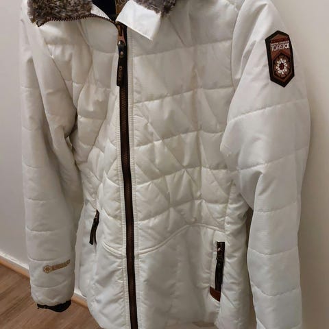 Uusi/uudenveroinen, kerran kokeiltu ja sittemmin käyttämättä jäänyt takki.