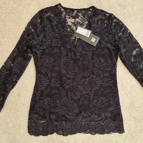 Noom merkkinen tummansininen joustava pitsipaita. Koko xs/s