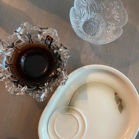 Reilunkokoinen lasinalunen / mukinalunen. Punavalkoinen huopa. Halkaisija 11,5cm. Käyttämättömät. H.5e/4kpl.