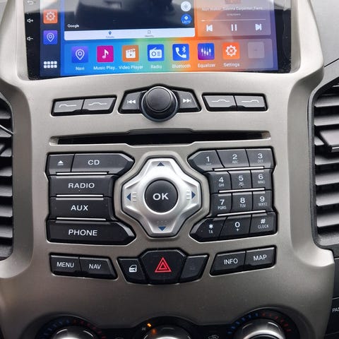 Polaris Rangeriin suoraan sopiva 2-din soittimen teline, muokattu alkuperäiseen keskikonsolin mukitelineen paikalle.