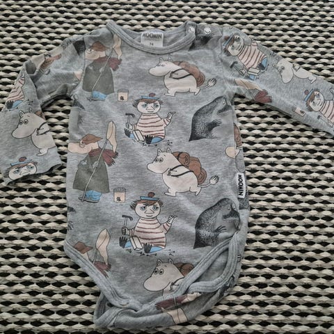 Myydään Moomin body koossa 74. Ehjä, siisti, käytetty kunto.