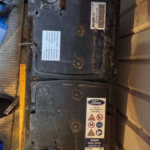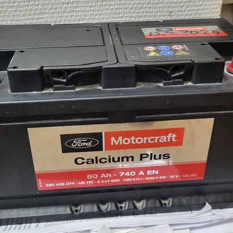Ford auton akku. Musta lyijyakku, jonka jännite mitattuna noin 12,8 V. Sopii käytettäväksi henkilöauton käynnistysakkuna tai vastaavana virtalähteenä ajoneuvossa, jossa vaaditaan 12 V akkujärjestelmä.