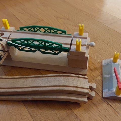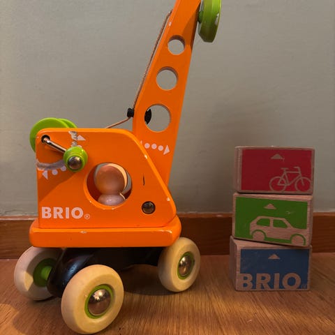 Brio-junaratoihin sopiva satamanosturi. Muuten moitteettomassa kunnossa, mutta mukana tulevan kontin magneetti on irronnut, mutta on liimattavissa paikalleen.