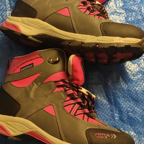 Ihanat lapsen vedenkestävät vaelluskengät jotka sopii myös talvikengiksi. Vähän käytetyt ja todettu pieniksi, edessä kärjessä pari naarmua muttei huomaa kunnolla.