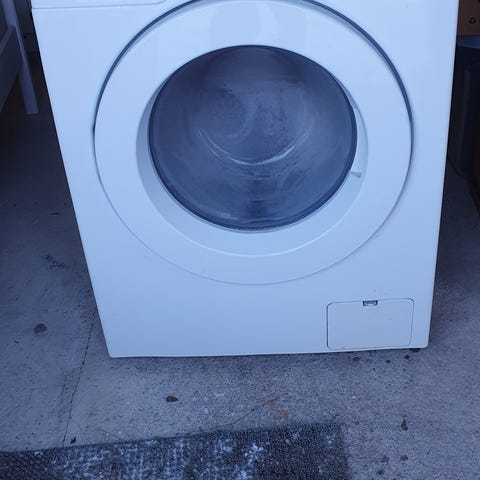 Samsung edestä täytettävä pesukone, väri valkoinen. Kone toimii hyvin. Kuvista näkee kosmeettiset haitat