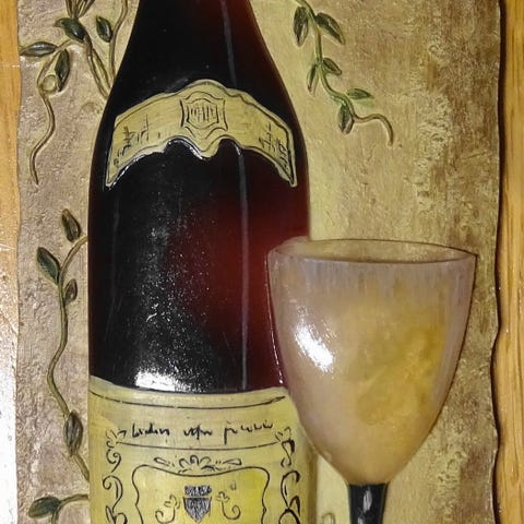 Kaunis keraaminen koriste seinälle, valkoviinipullo