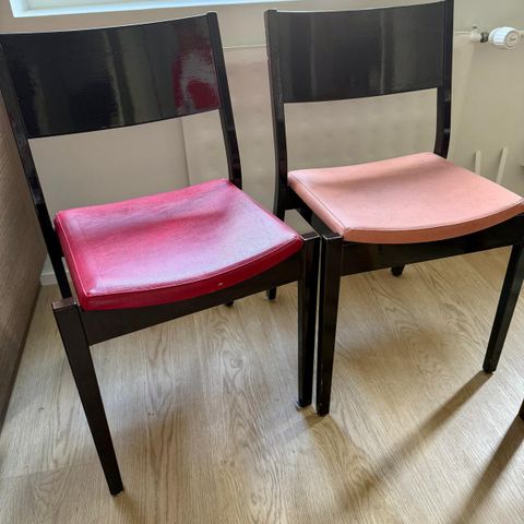 - 2 samanlaista Sotka tuolia,puinen, Kangasverhoilu, leveys/syvyys 45/45cm, korkeus/istuinkorkeus 90/45cm.