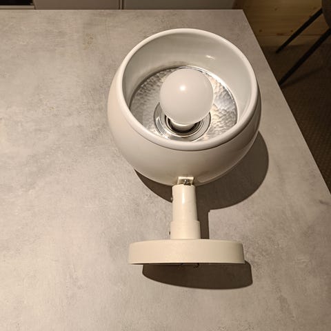 Todella hyvä kuntoinen kattovalaisin. Ns. Valkoista maitolasia ja terästä.