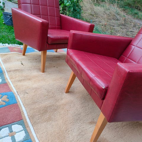 Vintage nojatuoli, retro nojatuoli, kernituoli, keinonahka, k tuoli, kerni, punainen, punainen tuoli, punainen nojatuoli