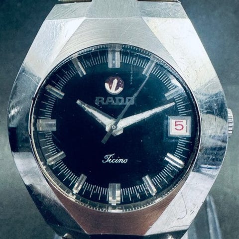 KuvausTapaus: 35 mm (läpimitta, lukuun ottamatta kruunua) x 44 mm (lukkopituus); kruunun pinnoite on haalistunut/kulunut.Kultainen kellotaulu, jossa kultaiset osoittimet ja merkit; joitakin tahroja.Kristalli: akryylipäivä/päivämäärä: Non-quicksetJousitus: jälkimarkkinat (uusi)Levy leveys: 18 mmPituus mukaan lukien kellon pää: Vapaa kokoPalveluhistoria: TuntematonVakuutettu lähetys seuraavien kanavien kautta:Paikallinen toimitus: Paikallinen kirjattu postiKansainvälinen lähetys: DHL ExpressTÄRKEITÄ HUOMAUTUKSIA!! HUOMAA ENNEN TARJOUKSEN TEKEMISTÄ!!1. Kello myydään sellaisenaan. Ellei toisin mainita, takuuta ei myönnetä eikä ajanottotarkkuutta, vedenkestävyyttä jne. koskevia vaatimuksia hyväksytä tai käsitellä.2. Ostaja on vastuussa kunkin maan veroviranomaisten mahdollisesti määräämistä tulli- ja/tai arvonlisäveroista. Tarkista siis epävarmat asiat asianmukaisilta viranomaisilta ja tee tarjous sen mukaisesti. Jos ostaja ei vastaanota toimitusta maksamatta jääneiden verojen vuoksi, ostaja on silti vastuussa kaikista toimitus-, tulliselvitys- ja muista hallintokuluista.3. Jos ostaja peruuttaa tilauksen toimituksen jälkeen, ostaja on vastuussa kaikista palautuskuluista, hallinto- ja tullimaksuista, jotka aiheutuvat kellon palauttamisesta ja uudelleentuonnista.4. Kansainvälinen transit (pois lukien tullaus ja viimeinen maili -toimitus) kestää yleensä enintään 2 viikkoa, mutta voi kestää pidempään riippuen maasta ja paikasta, julkisista vapaapäivistä, Ukrainan sodasta, globaalista pandemiatilanteesta ja niin edelleen.5. Huomioithan myös, että meillä ei ole vaikutusvaltaa tai määräysvaltaa siihen, kuinka nopeasti kunkin maan tulliviranomainen käsittelee paketin sen saapuessa maahanne. Siksi tarkista asia tulliviranomaiselta/postipalvelulta, kun lähetys saapuu maahanne.
