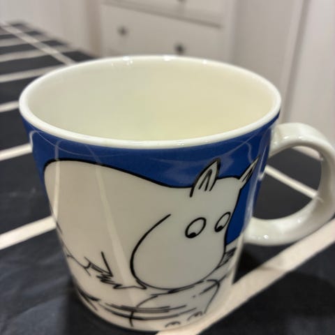 Käyttämätön ja virheetön muumimuki vuodelta 2011.