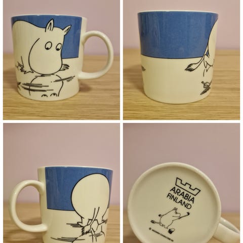 Käyttämätön, priimakuntoinen Muumipeikko jäällä-muki.