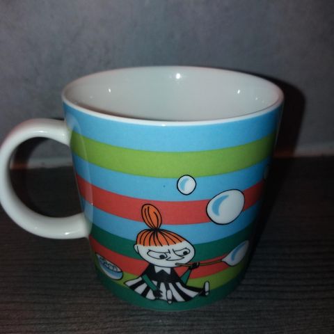 Käyttämätön, priimakuntoinen muumimuki ”Pikkumyy saippuakuplia.