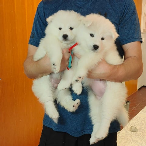 Pentuset ovat eläneet meidän kodin perheen keskellä ja näin tottuneet kodin normaali arjen ääniin. Pennut ovat tottuneet muihin koiriin.