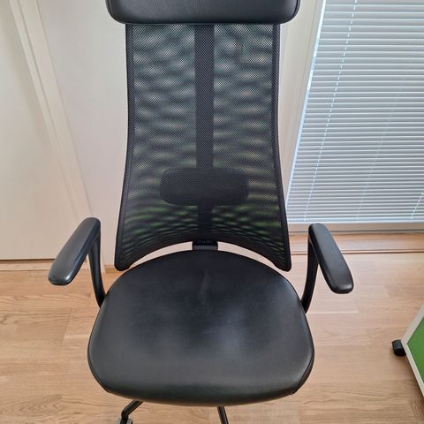 Tyylikäs moderni Ikea Järvfjället toimistotuoli, jossa on musta verkkoselkänoja ja harmaa istuinosa. Tuolissa on säädettävä korkeus ja pyörät, jotka tekevät siitä helposti liikuteltavan työympäristössä. Käsinojille paikat, mutta niitä ei mukana.Moderni toimistotuoli edustaa nykyaikaista muotoilua, jossa yhdistyvät käytännöllisyys ja mukavuus. Verkkoselkänoja tarjoaa hyvän ilmanvaihdon ja mukautuu selän muotoihin, mikä tekee siitä ergonomisen valinnan.