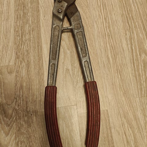 Vanhat ja käytetyt, terät vaihdettavissa made on switzerland, 500mm. Metallinen käsikäyttöinen vaijerileikkuri, jossa on pitkät varret ja uritetut muovikahvat paremman otteen saamiseksi. Leikkurissa on pyöröterät vaijerin tai muun pyöreän materiaalin katkaisuun. Sopii esimerkiksi vaijereiden, kaapeleiden tai vastaavien metalliosien leikkaamiseen työpajassa, rakennustöissä tai kotitalouskäytössä.