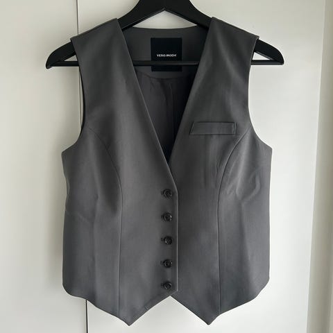 Vero Moda liivi, naisten koko S. Väri musta ja materiaali polyesteri. Pitkä, toppamallinen liivi, jossa vetoketjukiinnitys edessä. Vetoketju toimii molempiin suuntiin eli voi avata alhaalta jolloin jaloilla enemmän tilaa liikkua. Edessä painonapilliset taskut sekä sivuissa painonapit helmassa liikkumavaran säätöön. Soveltuu kerrospukeutumiseen ja ulkokäyttöön viileämmillä keleillä.