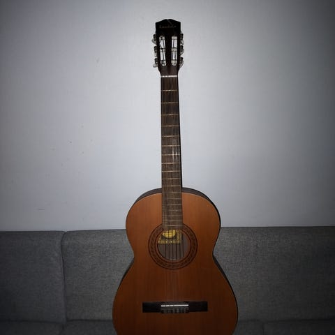 Akustinen Landola C-55nylon kielinen kitara puuviimeistelyllä. Perinteinen täysikokoinen malli, jossa on kuusikielinen otelauta ja klassinen kopan muoto. 80-luvun malli, vähän ajan patinaa. Sopii akustiseen soittoon esimerkiksi kotiin tai harrastuskäyttöön sekä keikoille. Kunto bueno. Löytyy Vantaan Havukoskelta.