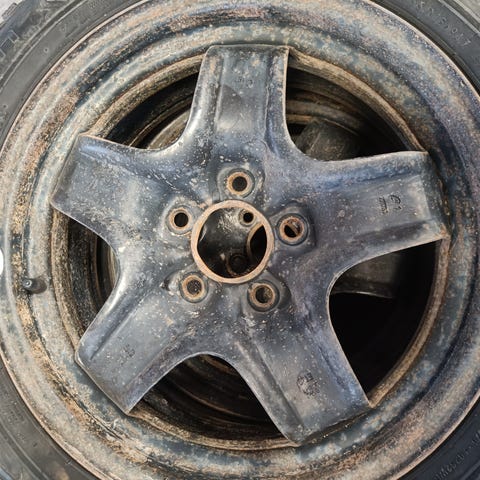 Uuttavastaavat nastat ja dezent vanteet. Vanteet likaiset kuvissa. Hieman hapettumaakin varmasti on.