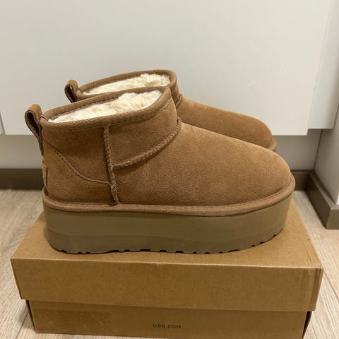 UGG talvikengät, koko 38. Matalavartinen malli paksulla pohjalla. Väri tummanruskea.