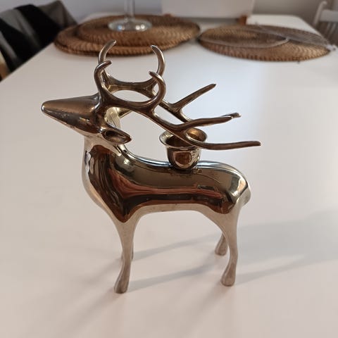 Metallivalua oleva poro ,korkeus 29cm pit. 17cm. Hopean värinen
