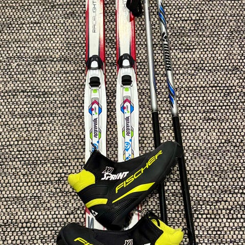 Fischer Pitopohjasukset 127cm, sauvat sekä Fischer monot 32