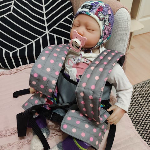 Käyttämätön nuken kantoreppu.
