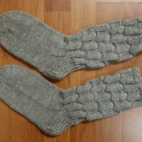 Itse neulotut naisten villasukat Novitan 7 veljestä langasta. (19) Luonnonvalkoiset. Koko n. 37 - 38, terä n. 22 cm. Hintaan lisää toimituskulut.