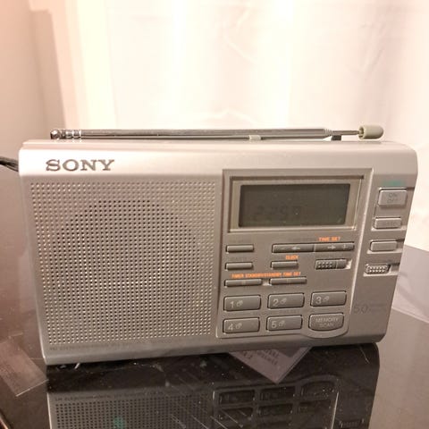 Kokoelmistani Sony ICF-SW10 matkaradio. Alkupetäispakkaus manuaalilka FM/AM- ja lyhytaaltovastaanotin, yhteensä 12 taajuusaluetta. Laitteessa on teleskooppinen antenni, viritys- ja äänenvoimakkuussäätimet sekä sisäänrakennettu kaiutin. Mukana alkuperäinen pakkaus ja käyttöohjeet useilla kielillä. Paristokäyttöinen, suunniteltu kannettavaksi ja matkakäyttöön.