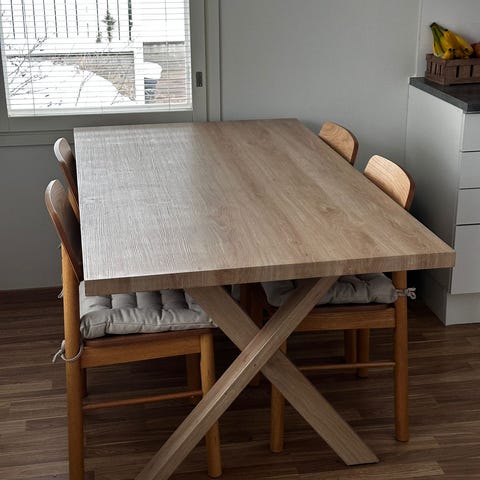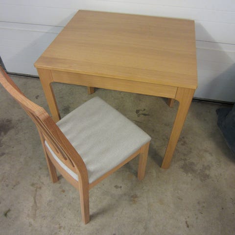 Stailauskäytöstä poistettu hyväkuntoinen Ikean Vedbo ruokapöytä (poistunut Ikean valikoimasta, ovh 499,-). Ainoastaan pöydän pinnassa on pieni kuljetuksessa syntynyt jälki.