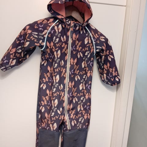 Name it softshell välikausipuku, polvet ja pepun kohta ehjät. Vetoketjun vetimessä kiinni oleva musta naru rispaantunut.