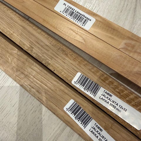 Myydän edullisesti ylijääneet jalkalistat, yhteensä yli 50 metriä.