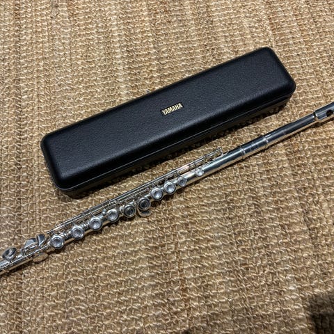 Yamaha YFL-212 poikkihuilu. Kevyt, hopeoitu huilu suljetuilla läpillä. E-mekaniikka. Kova kotelo ja pehmeä kantolaukku olkahihnalla. Soveltuu esimerkiksi aloitteleville ja kehittyville soittajille. Soitettu alle kymmenen kertaa.