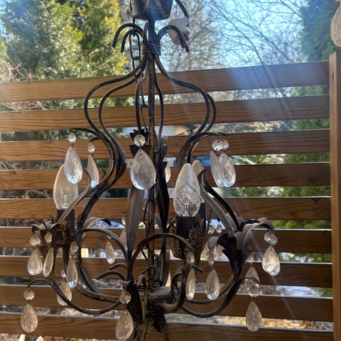 Pari kristallia hajonnut, ei huomaa käytössä. Töpselipistoke.