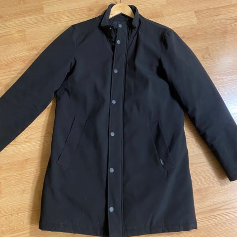 Kevyttoppatakki. Taskussa sisäpuolella kuvanmukainen reikä muuten hyvässä kunnossa. Koko M