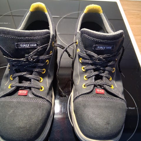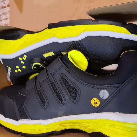 Kahdet turvakengät: Jalas varreton koko 44 ja Berner hieman vartta koko 43.